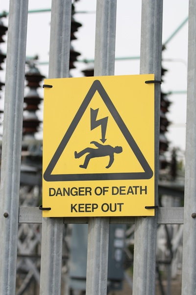 Pitfalls, electrical wire, stun fields? Non-lethal, incapacitating, definitely of the “do not touch, do not approach” style of protection. Indeed, they kind of go with the signs that say, “DO NOT APPROACH. DANGER OF DEATH” (in that distinctive Quill Gothic font), in English, French, Spanish, Russian, Chinese, and Vyortovian.