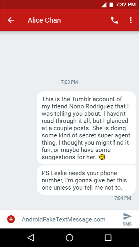 Is that Summer texting Alycia about Nono’s fic tumblr? What did Nono do to Summer to deserve calling down this sort of fury? I cannot imagine her being amused.