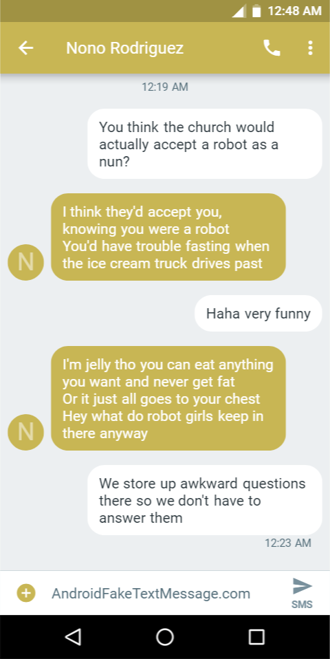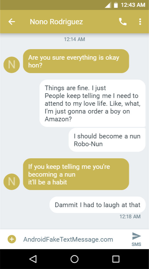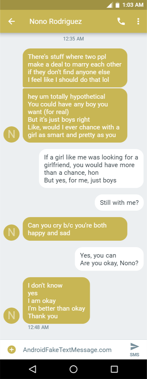 N: That was like five minutes of typing indicators. I feel like you wrote a novel there. What’s up, hon?