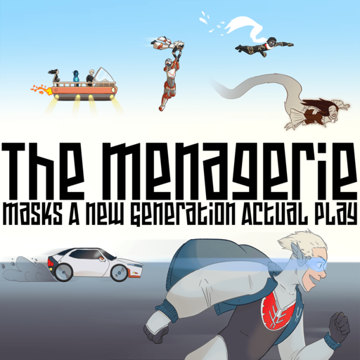 In case anyone is interested in some design decisions: Harry is front and center due to his iconic classic hero design. Anyone else, you might not know what the podcast is about. But you see Harry and your first thought is “oh, superheroes.” Same reason I put as many people flying as possible (including Pneuma, which is more of just an idea Bill brought up once rather than something in-game).
