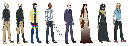 See the crocs just seemed like sensible shoes for someone who presumably has feet made of metal. The sweater is just because a) I was going to do something fairly quirky for all the Gardner Academy teachers and b) one of my coworkers worn almost that exact outfit the other day and it looked pretty good so I’ve been wanting to draw it since then.