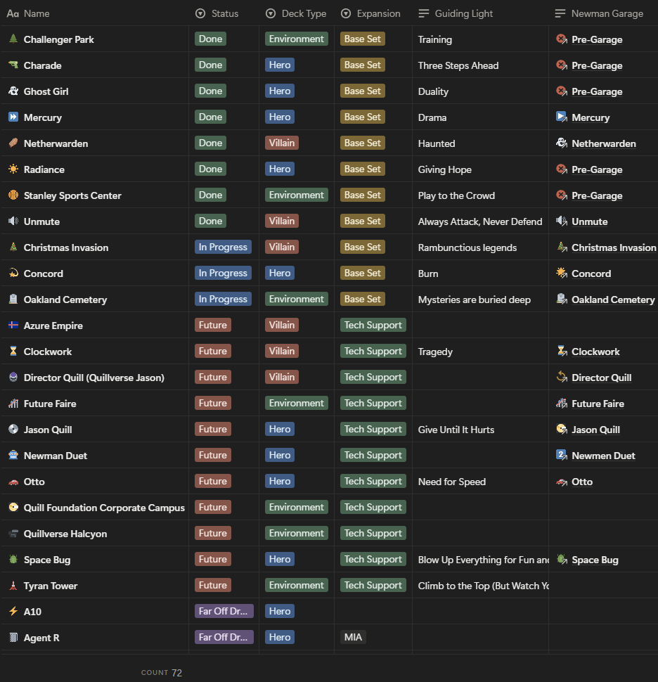 In each deck I like to flag a couple of cards as cameo slots for the characters of other creators from the SOTM Custom Deck Discord and this is the one for Concord’s deck. I put out the call for cosmic heroes and Atom Lass (middle left) and Spaceflame! (bottom left) were two of the first called out and belong to two of my favorite creators: GoldChevron and YakGuardian.