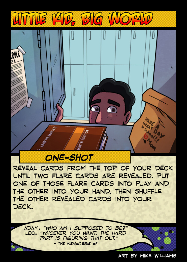 The art for both sides of the card could easily be cover art from various issues throughout the series. The Incapacitated side might be for something post-Issue 27 when Adam lost Solaris or could be from around Issue 47 when the team returned from the future and Adam got in trouble with his parents for disappearing for a week.