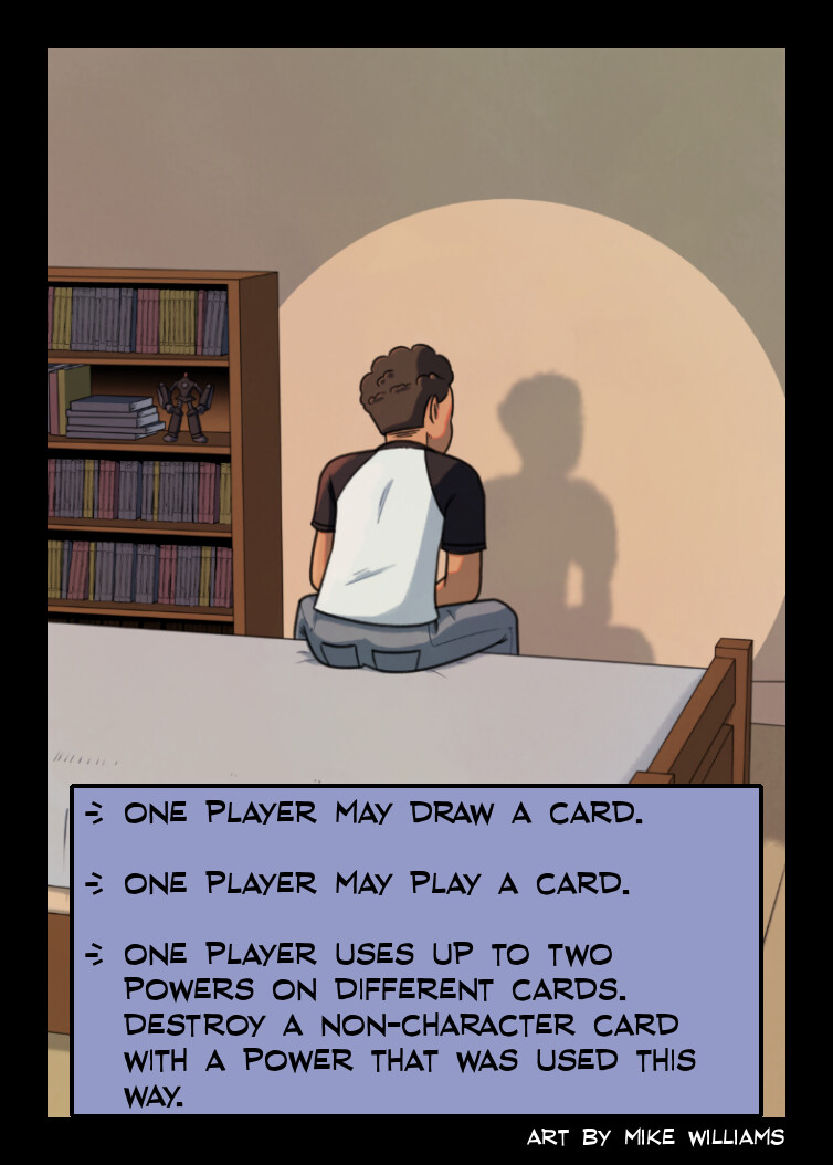 - One of the following: One player draw a card, one player uses a power, or one player play a card.