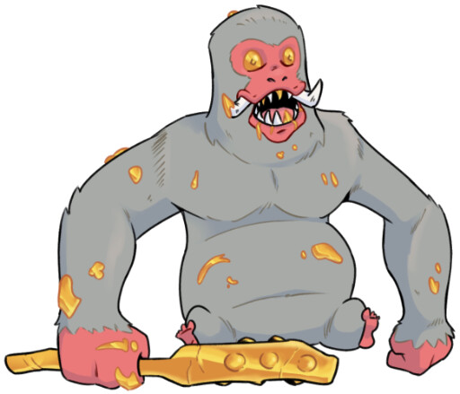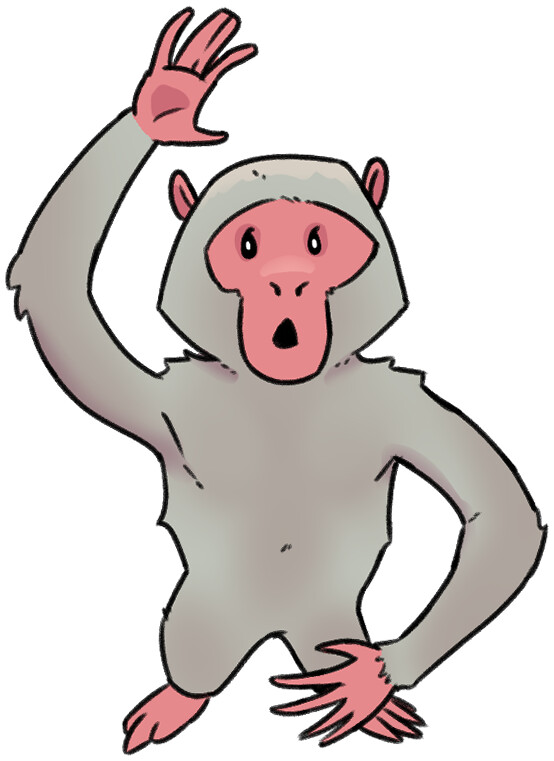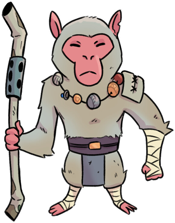 Another monkey swings down, festooned in garbage – the Snow Monkey Hoarder! Anders offers to help (Deft Assistance).