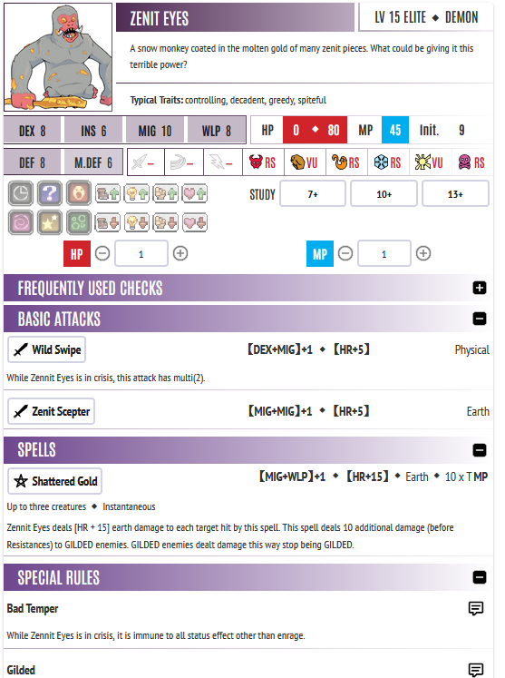 We are attacked – ZE (bad tempered, gilded, wave of greed) is an elite (2x turns), and a villain!