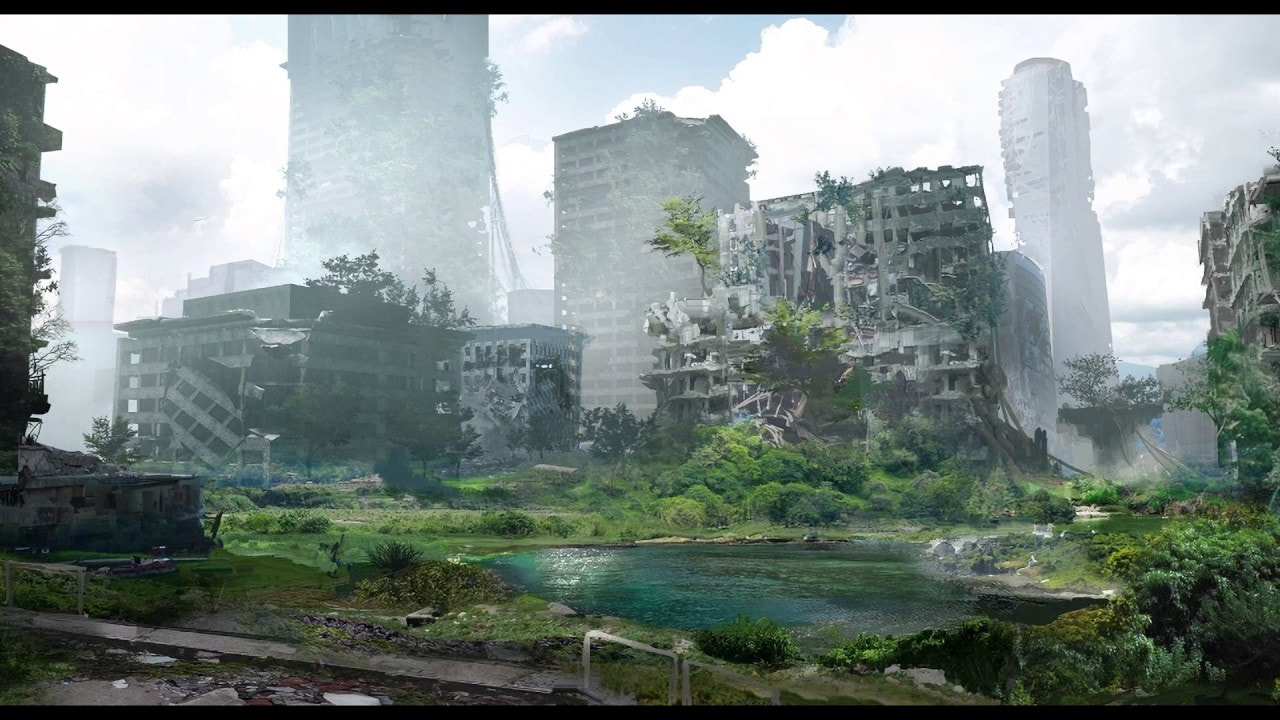 Sepiatone … prison is smouldering … no sign of Alycia … turn back toward the city … it’s also in ruins, old ruins … massive destruction, reminding him of the collateral damage his folk used to talk about.