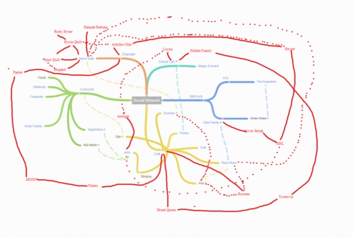 I wanted something that served as an indirect metric of involvement in the game - not just “screen time” or time dedicated to plots, but how rich the interactions have been between characters. If I looked at this as GM or as Ghost Girl’s player, for example, I’d be thinking “maybe hooking into some supporting cast would be cool”. While GG has some connections in the abstract, I don’t recall that she’s actually interacted with Hidden Family NPCs - if she had (or when she does), they’d definitely go on here.I’d also see that Concord has done a good job of keeping up social links, and Mercury’s links have been mostly focused around his Legacy (here’s my family, here’s members of another superteam, here’s another team people thought I’d join, here’s the adult team I might be expected to graduate into…).