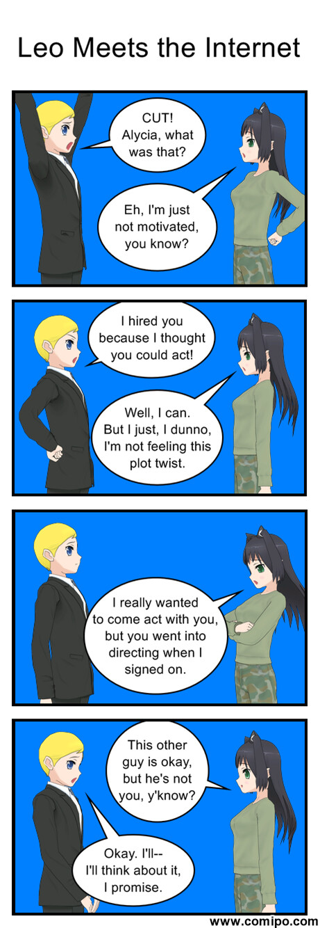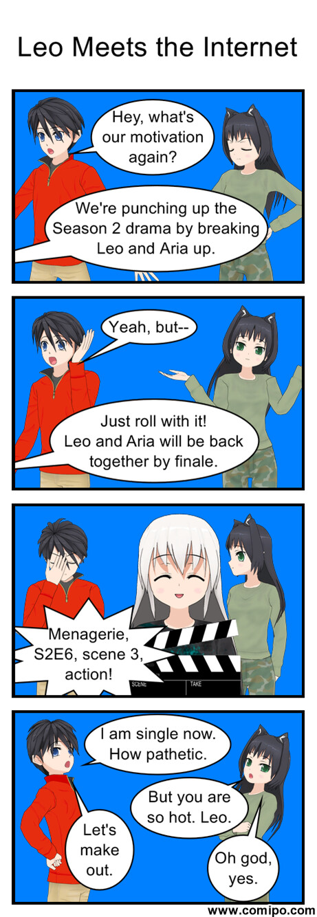 I guess I can elaborate on this a little bit I have friends who are rabid shippers in general, some who are kind of into it, and some who just enjoy hearing about the romantic shenanigans of this game’s characters. I’ve told a couple people about Leo’s story, mostly to independently gauge how much of an aversion of Pygmalion I’ve managed, and they gave Leo the seal of approval for honorable behavior. So far, so good. I also periodically troll one of them with stories about how Leo & Aria are breaking up or having relationship difficulties and he’s like “don’t do this to me” with a sad puppy-dog face.