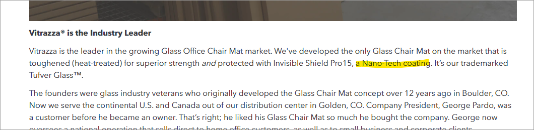 "Yes, your Nano-Tech chair mat will, in case of threat, envelop you and your chair, protecting you from gunfire, lasers, meteor strikes, or spider-bots!"