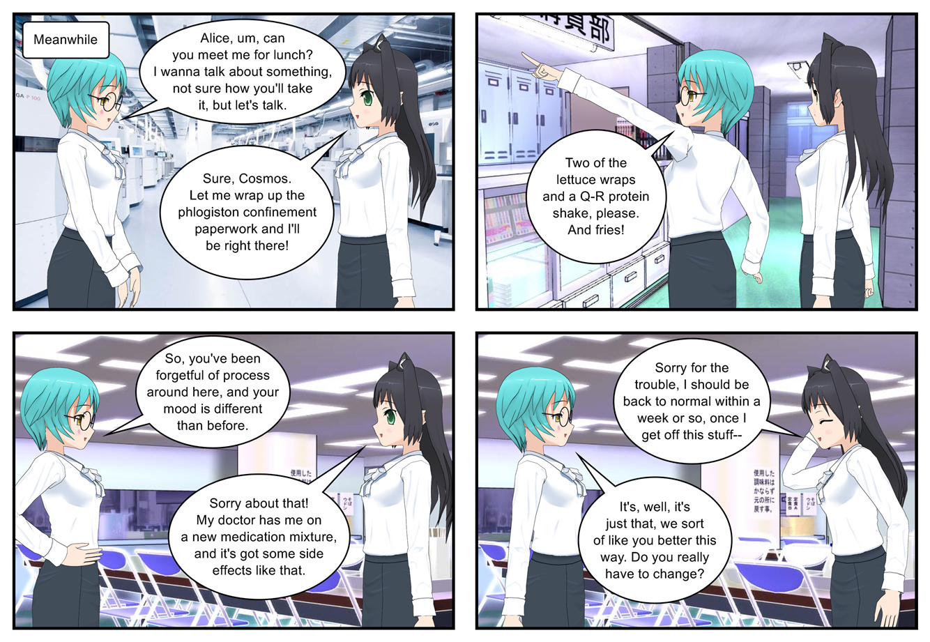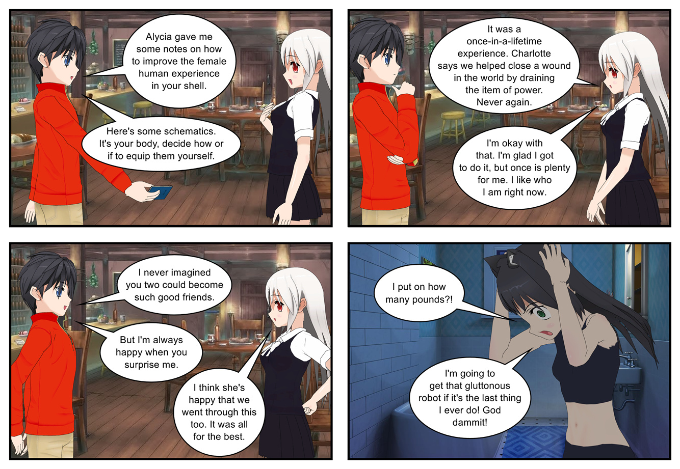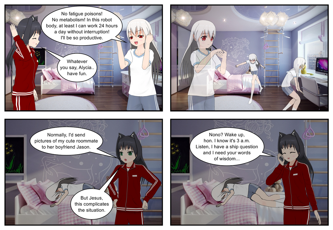 And Alycia’s variation on that theme for that matter. “I’m in a robot body. I can keep working on stuff all night long!”