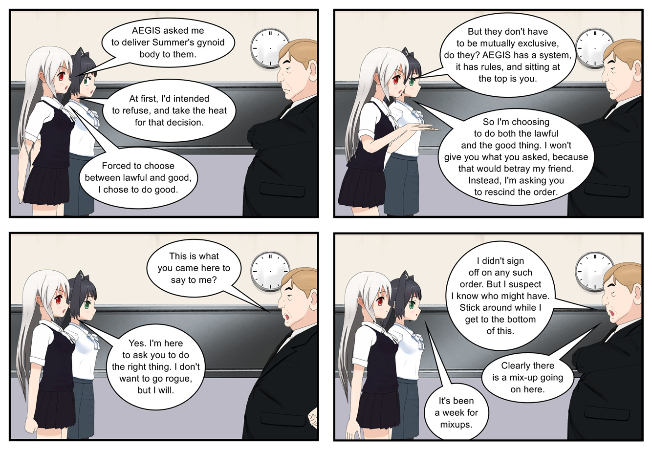 While super-spy Alycia gets to tangle with a thorny ethical dilemma, our emotionally aware Summer gets to deal with a people problem.